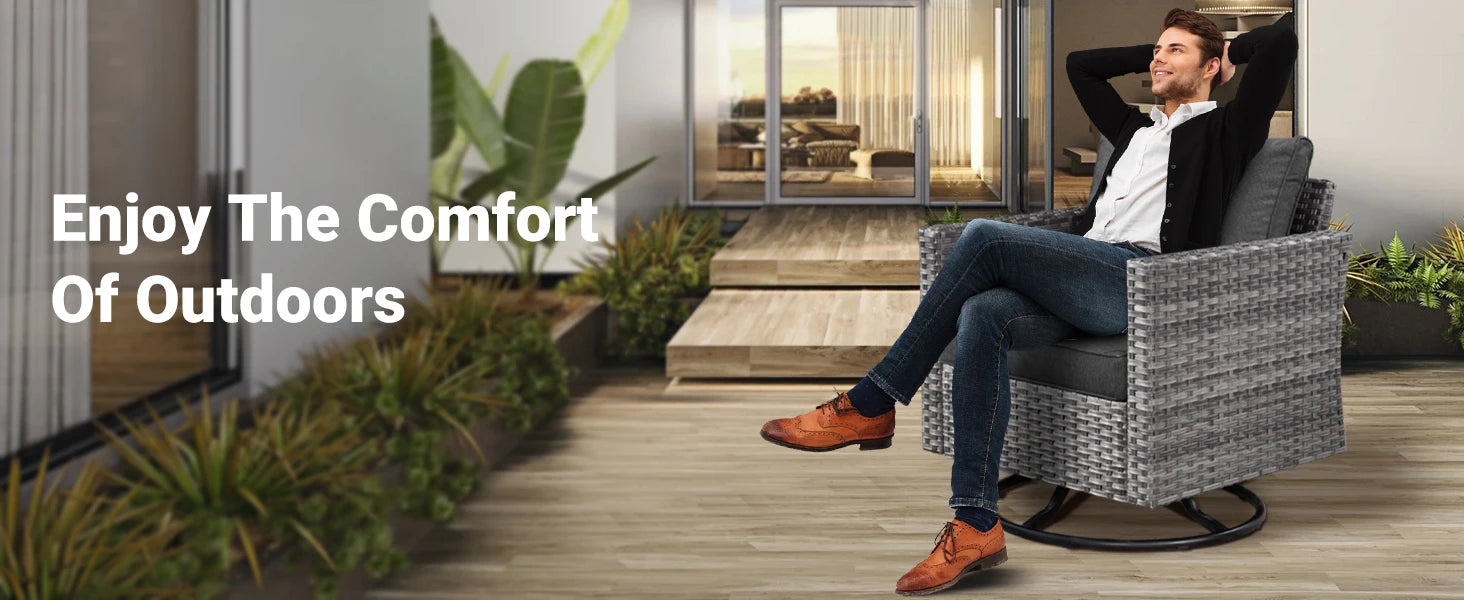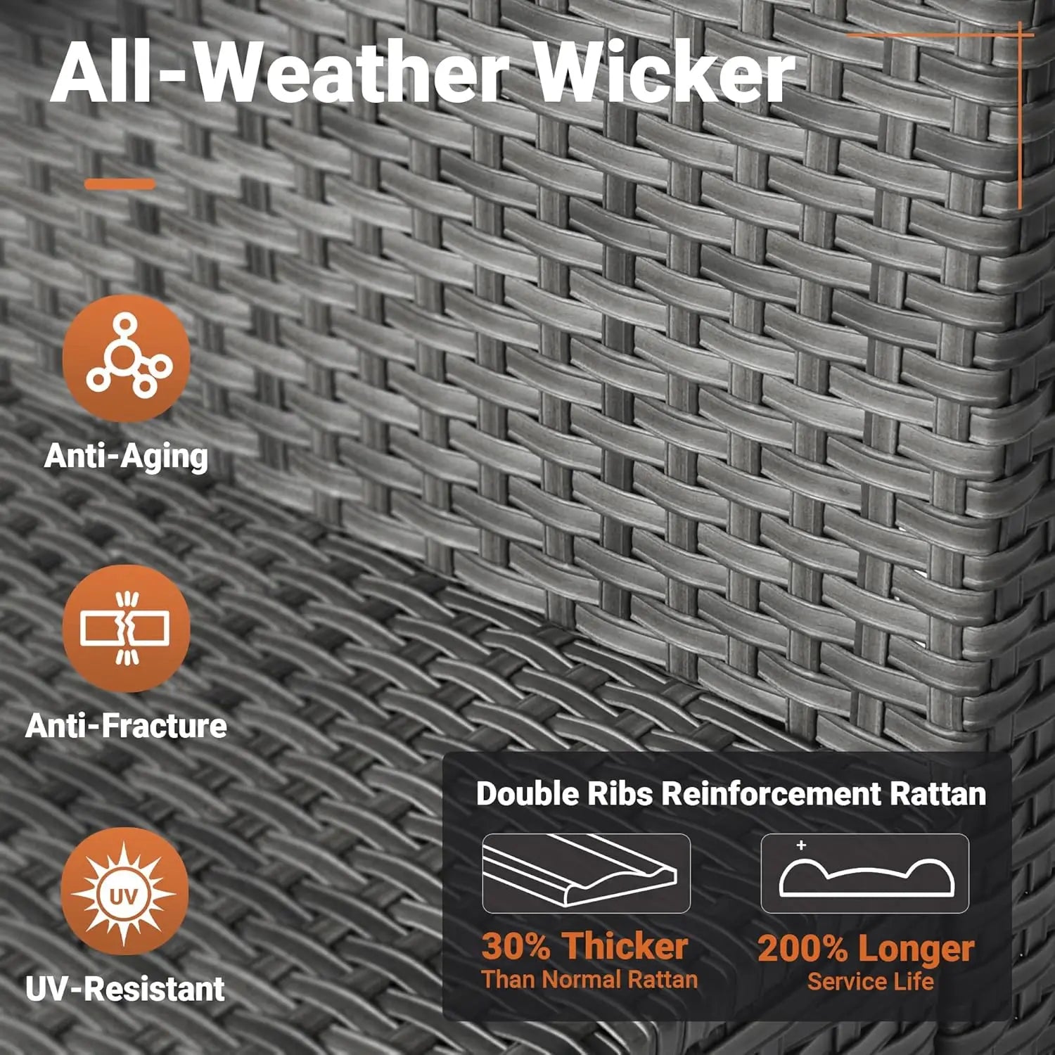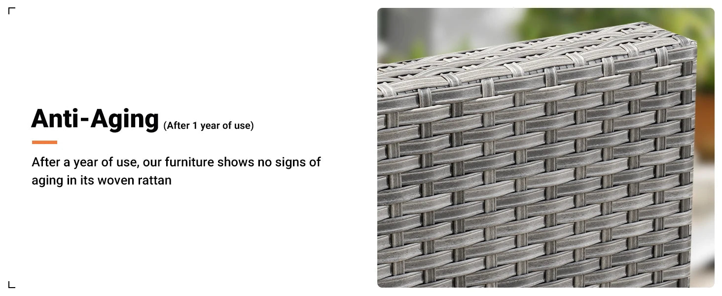 - Wicker construction engineered for outdoor use and easy maintenance.