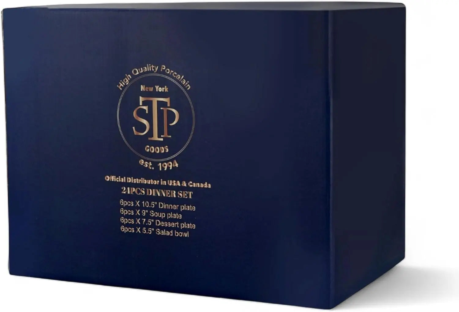 Bone China Dinnerware Set of 24 for 6 pers. Dessert Plate Dinner Plate Soup Plate with Serving Bowls (Melodie de Fleurs)