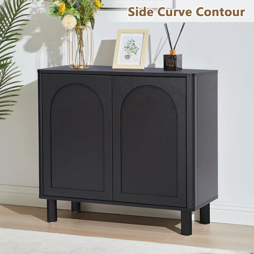 Contemporary Arched Door Sideboard Buffet, Solid Wood Leg Kitchen Storage Cabinet, Accent Console Table