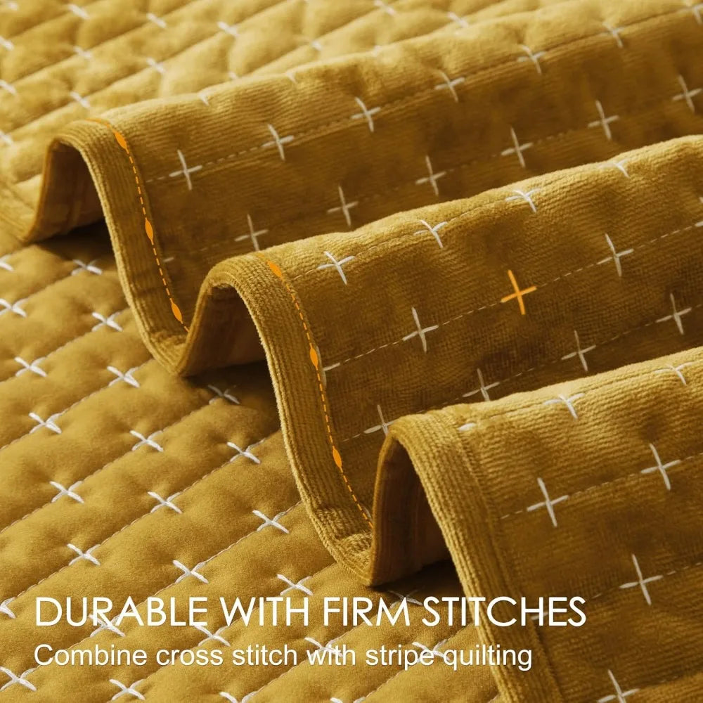 Luxurious Oversized King Size Velvet Quilted Bedding Set - Soft Lightweight Coverlet