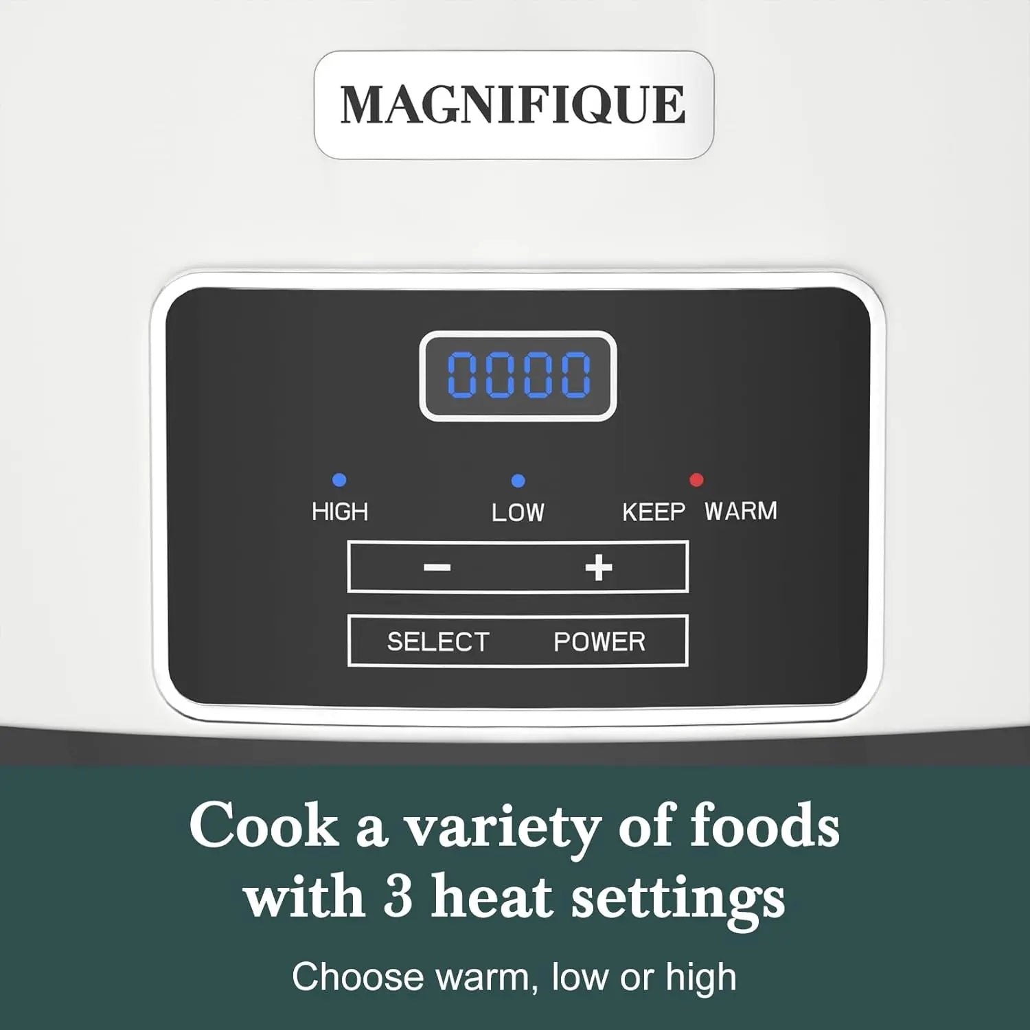 MAGNIFIQUE 7-Quart Programmable Slow Cooker with Timer Keep Warm - Small Kitchen Appliance for Family Dinners - Serves 6+ People (White)