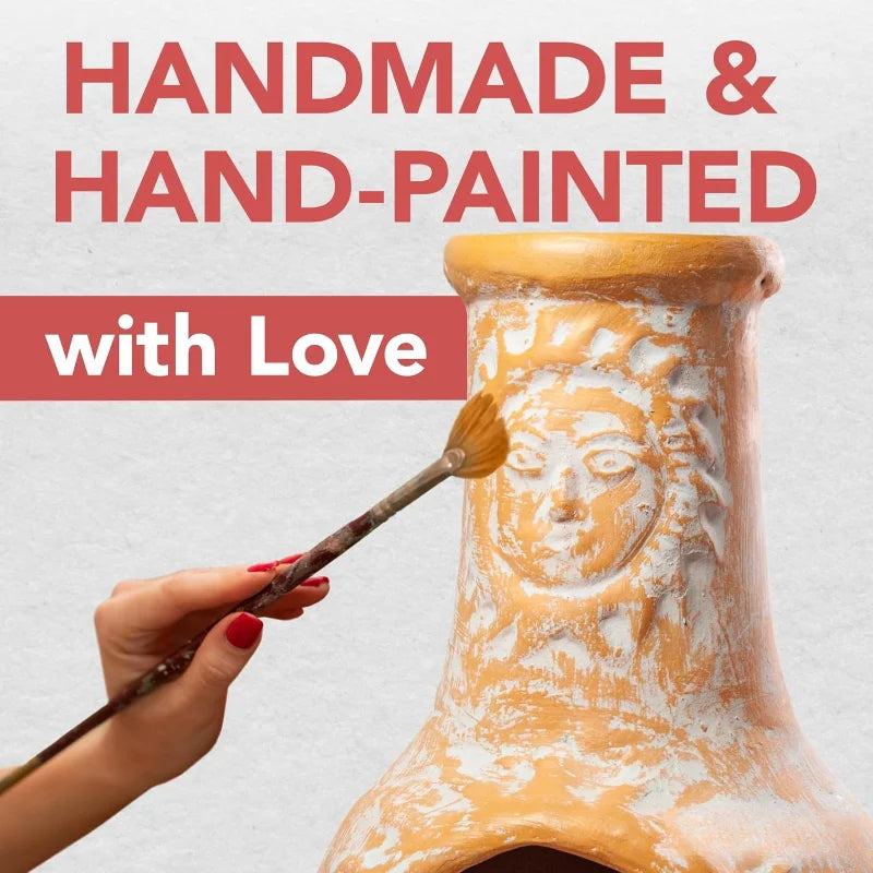 Medium Chiminea Outdoor Fireplace Clay Chimineas with Chimney Rain Lids and Solid Metal Stands - Yellow Terracotta Chimenea