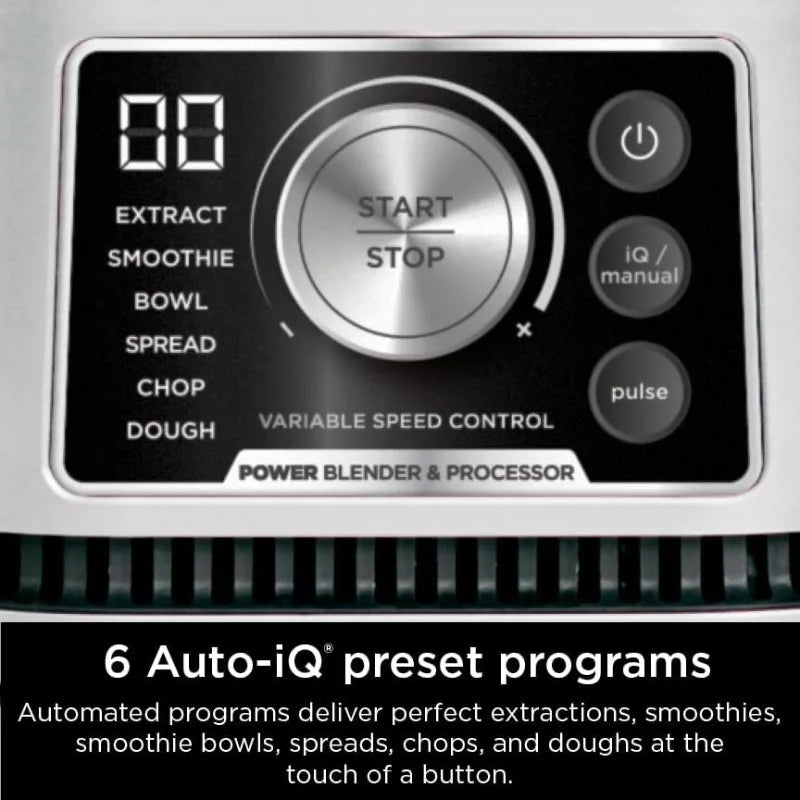 - 6 VERSATILE FUNCTIONS: 6 preset Auto iQ programs for one touch smoothies, extractions, bowls, spreads, chopping, and dough.
