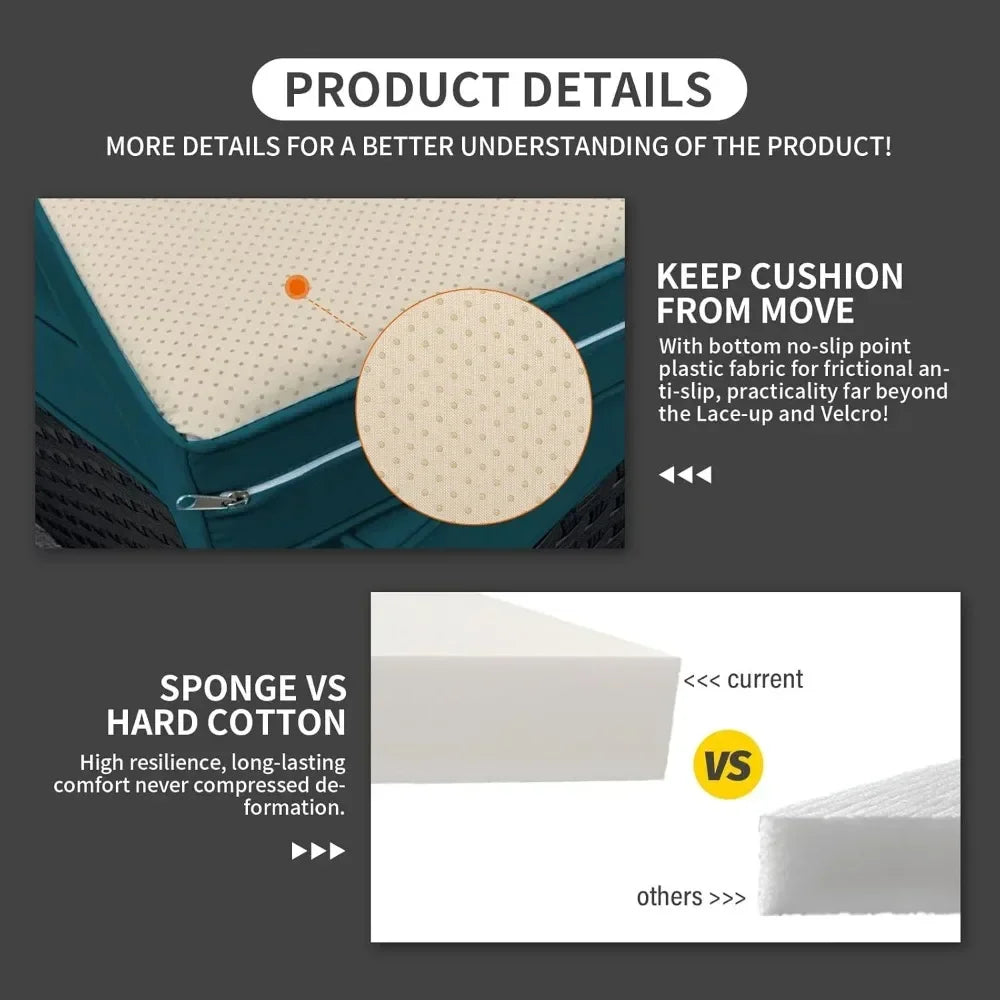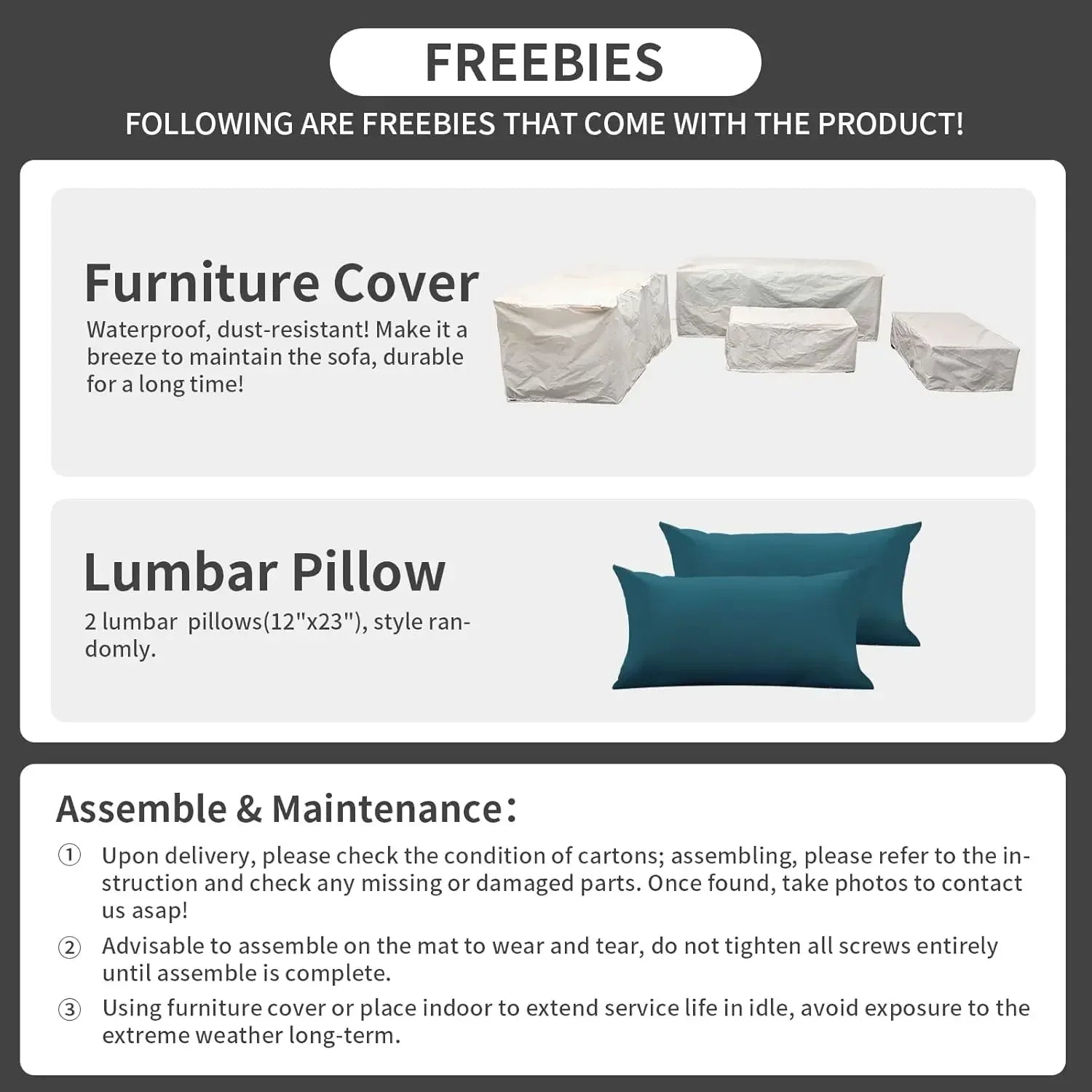 Patio Furniture Set 6 Pieces Couch Outdoor Chairs Coffee Table Peacock Blue Anti-Slip Cushions and Waterproof Covers